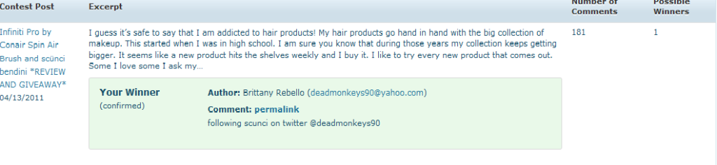 I just entered to win a Conair Spin Air Brush and a scünci bendini @ Mommy’s Hangout